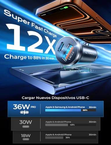![LISEN 69W Car Charger Adapter [All Metal&Smallest] Cigarette Lighter USB Car Charger Fast Charge USB C 12V USB Socket for iPhone 17 16 Pro Max Samsung Galaxy S25 iPad Pro](https://m.media-amazon.com/images/I/41JIHCmqTNL.jpg)