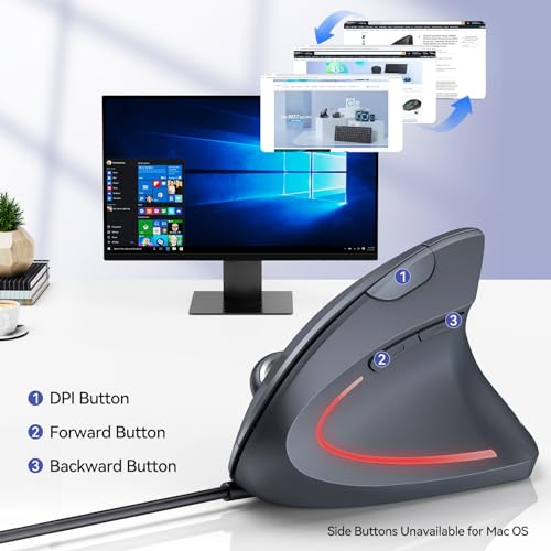 [6 Buttons & Wide Compatibility] With 6 buttons, this ergonomic mouse greatly improves your efficiency and meets all your functional needs. The side buttons make browsing the web a breeze by allowing you to easily turn pages. Wired Mouse for Laptop compatible with Windows 11, 10, 8, 7, Windows XP, Vista, 2000, Linux, and Mac OS or later (Note: Side buttons do not work on MAC OS systems).