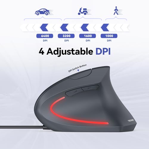 [6400 High-precision Wired Mouse] The wired ergonomic mouse has 4 adjustable DPI levels (6400/3200/1600/1000). You can adjust the DPI of the wired mouse to meet your different needs. With 6400DPI, the PC mouse can achieve faster cursor movement and greater accuracy, making it an excellent option for gamers, designers, and multiple-screen workers.