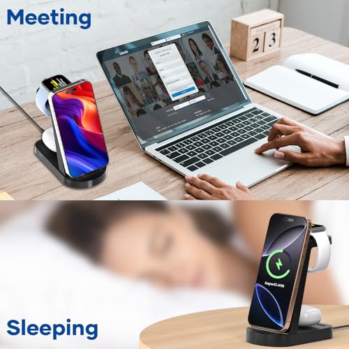 Broad Compatibility: Designed for a wide range of Apple devices, this Apple charging station supports iPhone 16/16 Pro/16 Pro Max/16 Plus/15/15 Pro/15 Pro Max/15 Plus/14/14 Pro/14 Pro Max/14Plus/13/12/11/X/8 all series, as well as Apple Watch iwatch Series 10/9/8/7/6/5/4/3/2/Ultra/Ultra 2 and AirPods 1/2/3/Pro 1/Pro 2. Just place your devices on the stand, and they will begin charging efficiently and securely