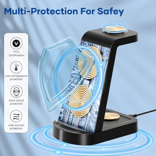 Fast & Secure Charging: Providing up to 7.5W–10W for iPhones, 5W for AirPods, and 3W for Apple Watch when paired with the included QC 3.0 18W adapter, thisiPhone charging stationensures a stable power supply. Built-in heat dissipation vents and multiple safety features—including over-temperature, over-voltage, short-circuit, and over-current protection—ensure safe and reliable charging