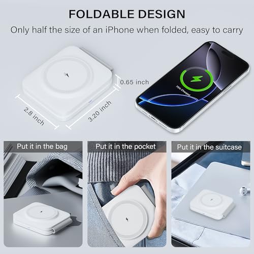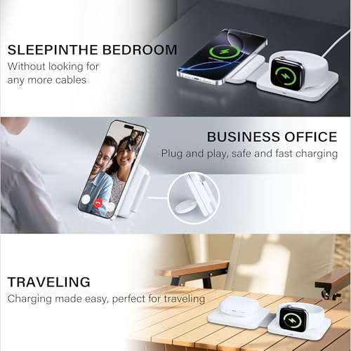 Foldable & Travel Friendly Design: The foldable wireless charging station for iPhone and Apple Watch is compact, lightweight, and perfect for travel or office use. Easily slips into your bag or backpack. This travel Apple Watch and phone charger keeps your desk or nightstand tidy and efficient