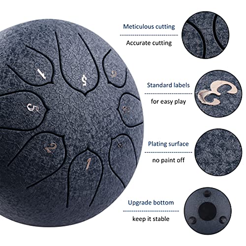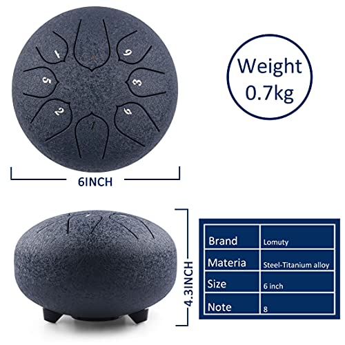 【Handmade by Professional Craftsmen】Our 6 inches 8 notes steel tongue drum comes pre-tuned to the mxied C major and has a sound more clean and ethereal.