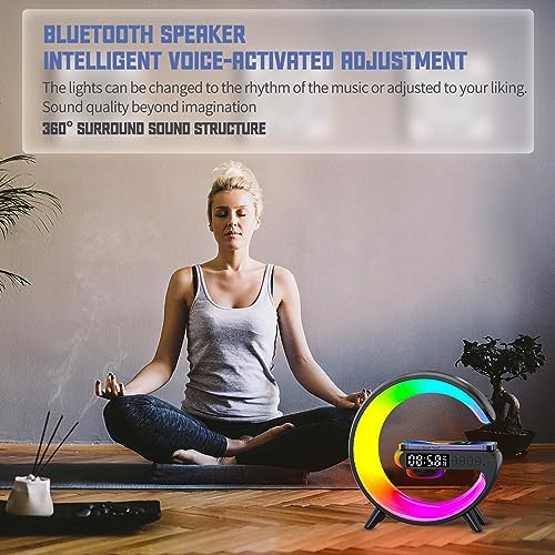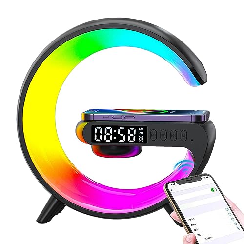 Atmosphere G Shape Bedside LED Wireless Light Up Charging Speaker | Timer Alarm Clock Charger Stand Color Changing Wireless LED Music Lamp for Outdoor