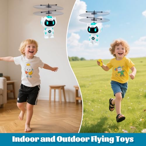 【Compact & Portable Design】With its small, lightweight build, this flying robot is easy to carry in a bag or backpack. Kids can take it to friends houses, parks, or on trips, so fun is always within reach. Helicopter toy compact size also suits play in smaller indoor spaces like bedrooms or living rooms.Comes with a USB charging cable for convenient powering.