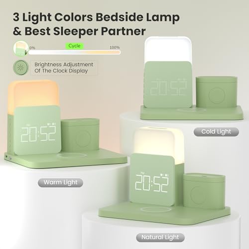 💡【Superior Charging & Light】 Discover the perfect blend of functionality and comfort with our high-quality wireless charger. Made from special ABS material for low energy consumption and efficient heat dissipation, it stands out in durability and performance. The integrated night light adds a touch of serenity, featuring adjustable color modes (white, warm white, warm) and brightness levels (10%-100%), ensuring a soft, flicker-free ambiance that protects your eyes.