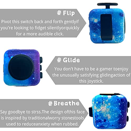 【Star Cube】This cube is a multifunctional toy with 6 different sides, each with its own unique function (click, glide, flip, breathe, roll, rotate), when you feel tired or stressed, use it, it will bring you a relaxing feeling.