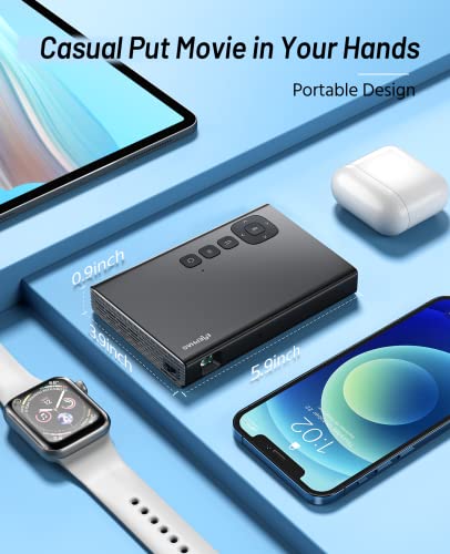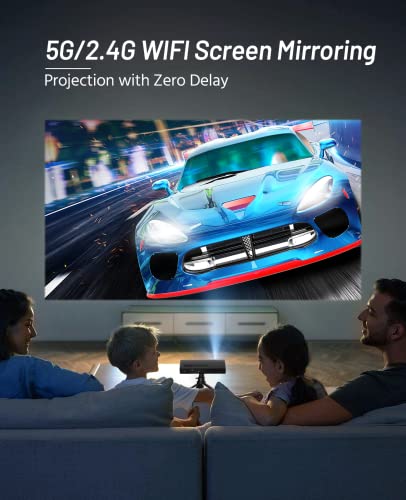 【5G WIFi and Bluetooth】 This bluetooth projector supports 2.4G/5G WIFi to connect iOS and Android systems and can realize screen projection without any cables, 5G WIFi connection technology brings a smoother network experience, and 2.4G WIFi partition wall performance is better Well, the equipped Bluetooth can connect to external speakers for a more immersive experience.