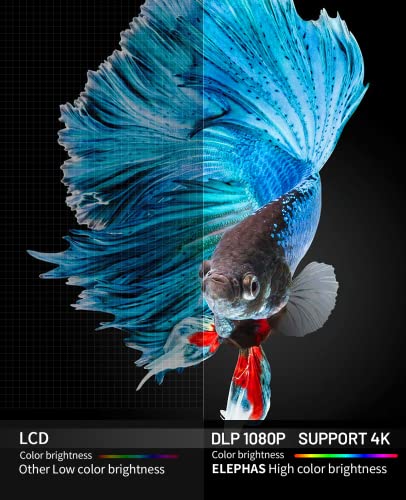 【Upgraded DLP & 500 ANSI】Mini projector adopts the latest DLP technology with advanced multi-color processing and brightness up to 500 ANSI. The uniformity reaches 90%, and the high-resolution optical lens accurately reproduces each color. The image can be up to 200 inches, bringing a better viewing experience than other LCD projectors. Recommended for use in darker environments.