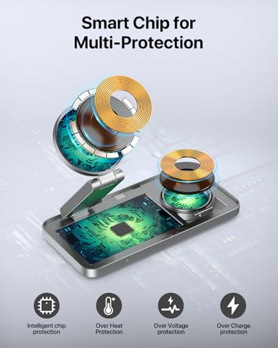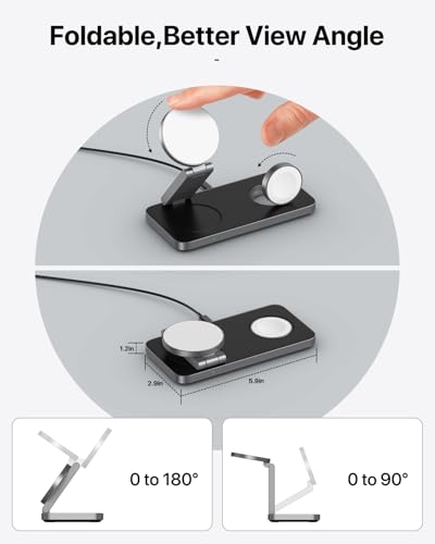 [Adjustable and Space-Saving]- Featuring a foldable, slim, space-efficient design with angle-adjustable phone and watch charging modules, this mag-safe charging station allows you to find any viewing angle you prefer. The compact foldable design also makes it perfect as a travel charger for multiple devices