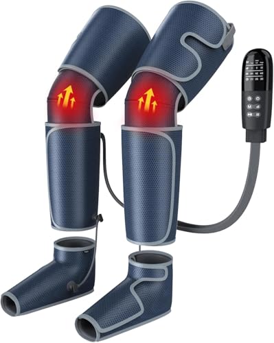 Leg Massager with Air Compression & Heat, 4-In-1 Foot Calf Thigh Knee Massager for Circulation & Pain Relief, 4 Modes 4 Intensities 2 Heat Levels, 10*2 Airbags, Compression Boots Machine, Fit 5’1-6’2