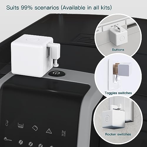 【Intelligent & Convenient】 Voice and APP remote control. Fingerbot uses Bluetooth protocol and connects to the Internet by a Bluetooth Hub(sold separately), supporting voice control and APP remote operation. Simply speak your command to the robot button controller, and it will execute the corresponding operation. Additionally, you can remotely control the device through the APP, even when you are not at home.