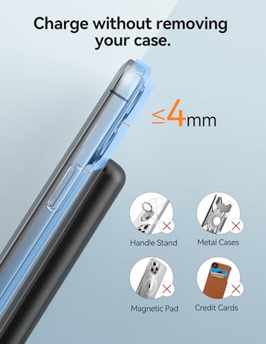 【Convenient Charging】Mobile phone cases with a thickness of less than 4 mm can be charged directly.(Notice:Pro Max models may need to be placed horizontally and Mini models may require a spacer to achieve better alignment and effective charging.)